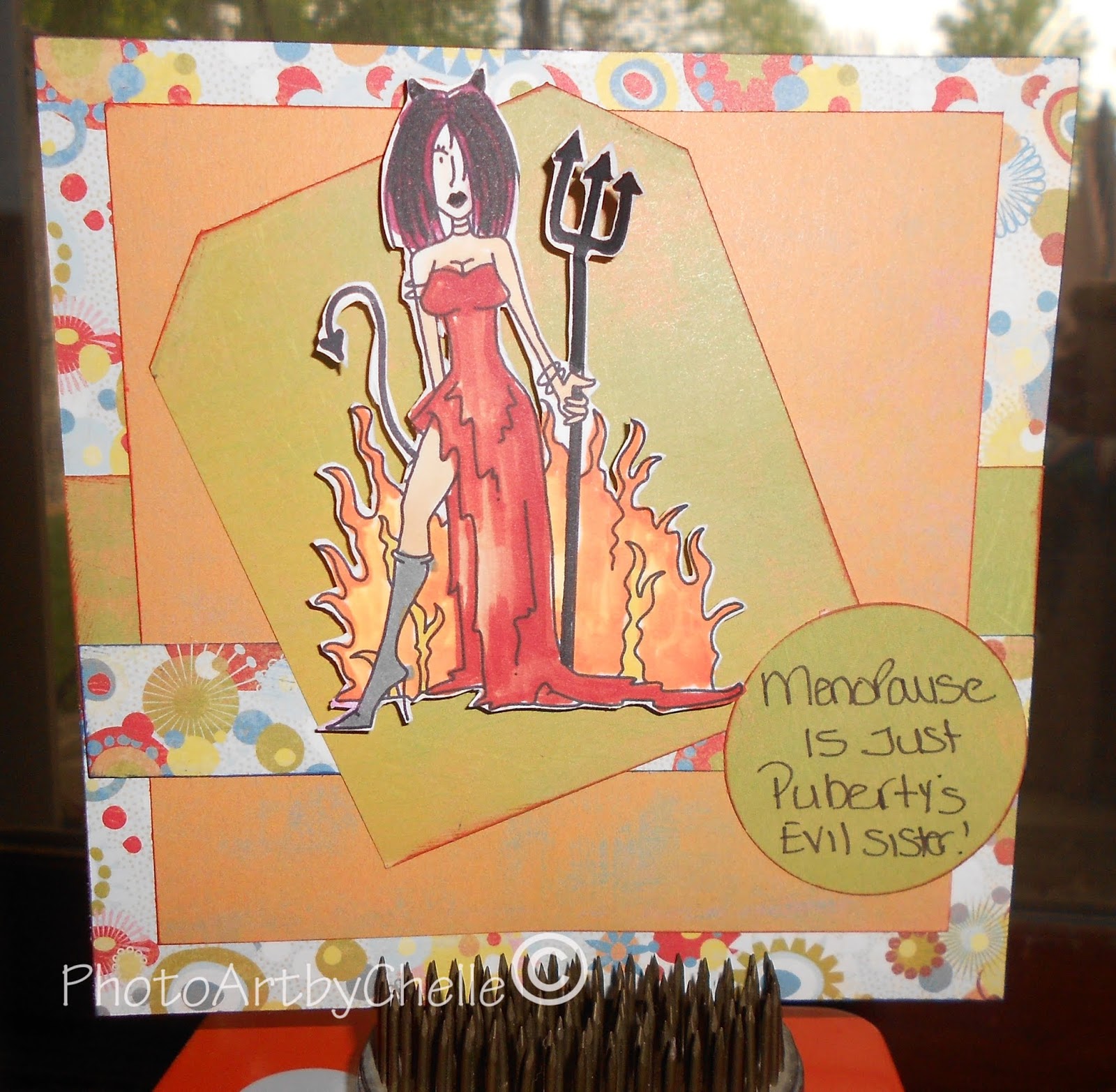 This weeks challenge is M is for Menopause. I went through a couple of different ideas.. well quotes that I liked. Ended up with this one as it went with an image I already had printed.
